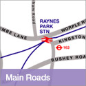 The 163 bus runs approximately every 8 minutes, and links Wimbledon & Raynes Park train stations with Morden tube station. Southway is slightly nearer Raynes Park than Morden.